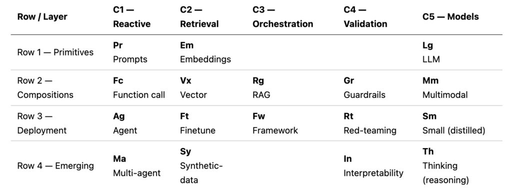 La AI Periodic Table, creado por IBM, es un enfoque evergreen y minimalista para arquitectos, jefes y líderes técnicos: separa la solución en elementos composables (como una tabla periódica) y te ayuda a decidir qué necesitas para cada caso de uso (chatbot, RAG, agente) con control, trazabilidad y confianza.